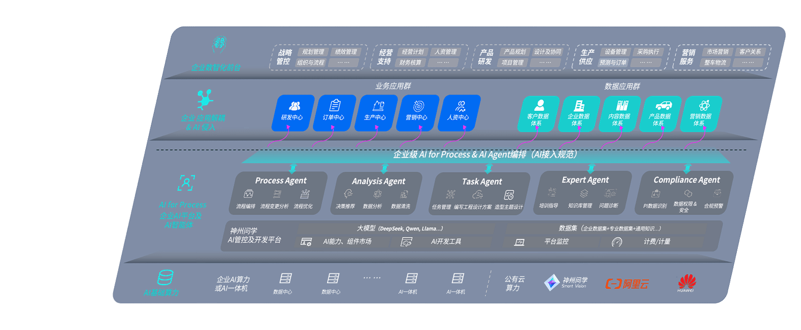 鼎点平台问学智车解决方案是一套基于AI技术的汽车行业智能化系统,,覆盖从底层算力到顶层AI应用的全栈方案。。方案由算力层、、、模型层和应用层组成:算力层,,方案支持多种一体机配置,,,具备云端灵活部署、、、、多云适配以及动态优化计算资源的能力;模型层,,,,鼎点平台问学平台版提供了企业级AI应用一站式构建与管理平台,,,支持基于后训练强化技术的汽车企业专属模型的训练、、、评测和运营;应用层,,,,鼎点平台问学DeepSeek版提供包括超级员工、、、智能招采、、、、智能营销、、、、智能客服、、、、AI for BI等一系列解决方案,,,可助力汽车行业实现数字化转型,,让管理更智能、、、、响应更敏捷。。